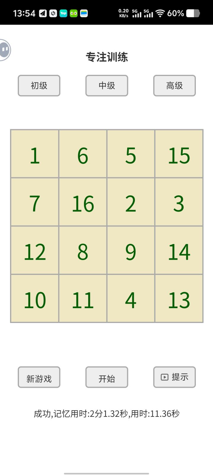 专注训练不应该是不隐藏数字直接点吗,应该加个专注训练模式,这个太难了