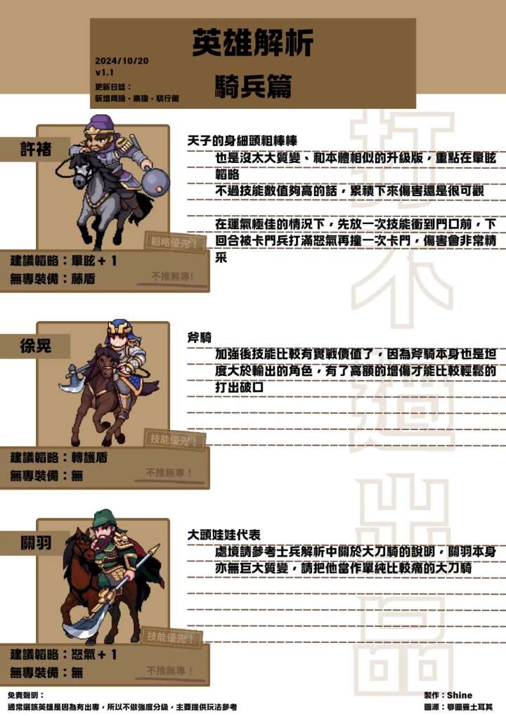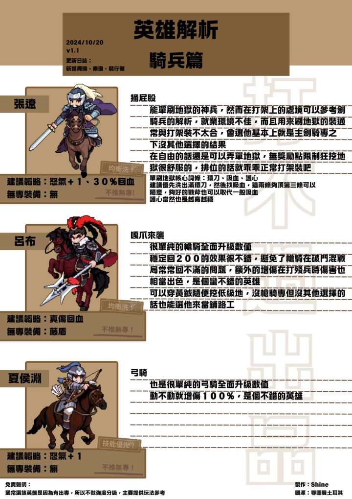 大刀骑兵的另一种专搭配。锁吸血,找+攻击力 ,战斧 融千机伞。6级骑兵攻击力能轻松达到137点,贴身之后一刀一个小朋友。而且还能轻松挖地,两队5级带英雄队伍能轻松过地狱2。 唯一缺点没有距离+1容易卡刀,打架需要从侧面或者后方进场。