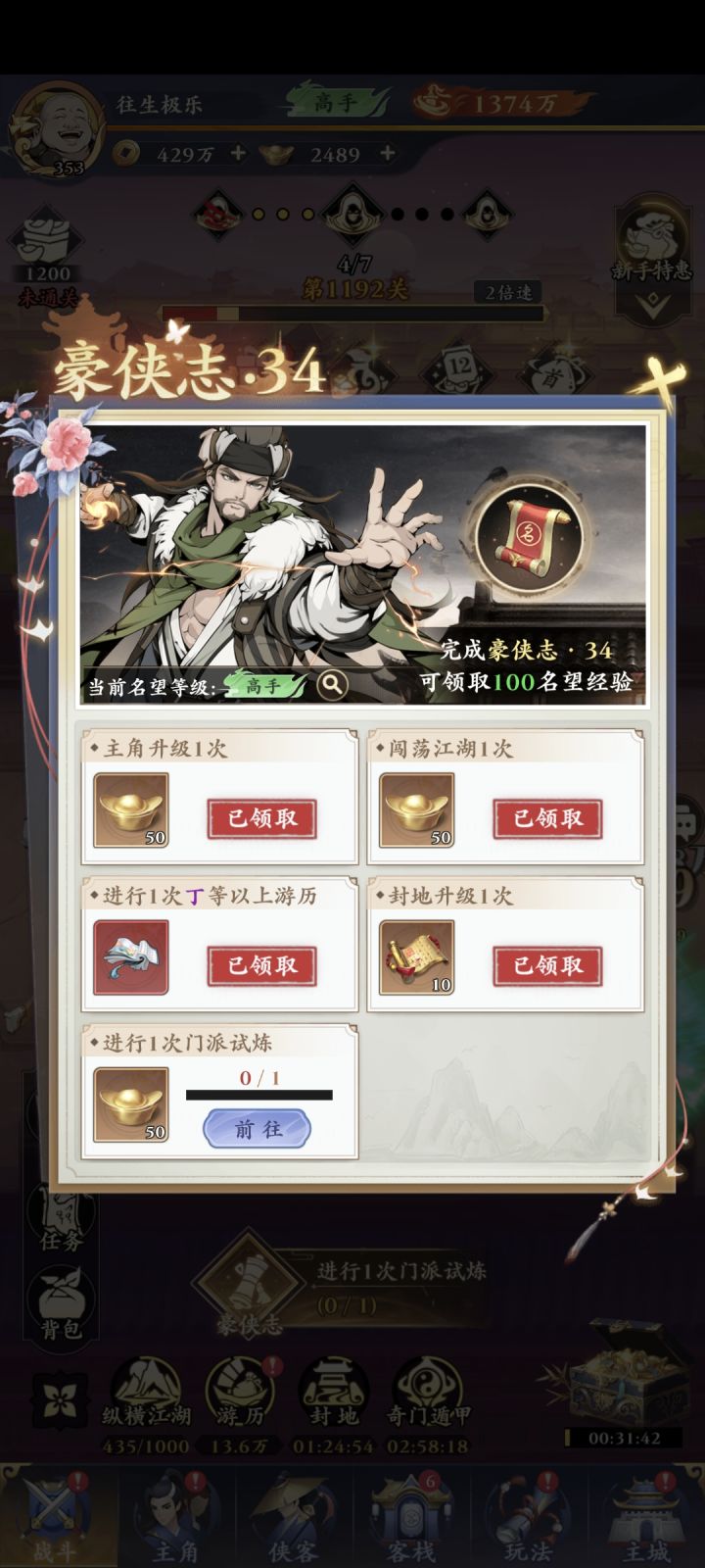 对于游戏内的阵容,已经推荐很多了。那对于刚入坑的玩家,如若不了解游戏,可能会陷入迷茫状态,那今天就给大家来一期超详细的新手开局攻略,需要的可以点赞收藏一波哦~疯狂百抽活动开局获取侠客途径之一【活动奖励】:当完成百连抽的词条任务后,即可任意领取一名侠客。【参与条件】:玩家等级达到20级以上,疯狂百连入口即可显示。选择副本玩法里的闯荡江湖,进行挂机挑战闯关,即可快速升至20级。游历奇遇开