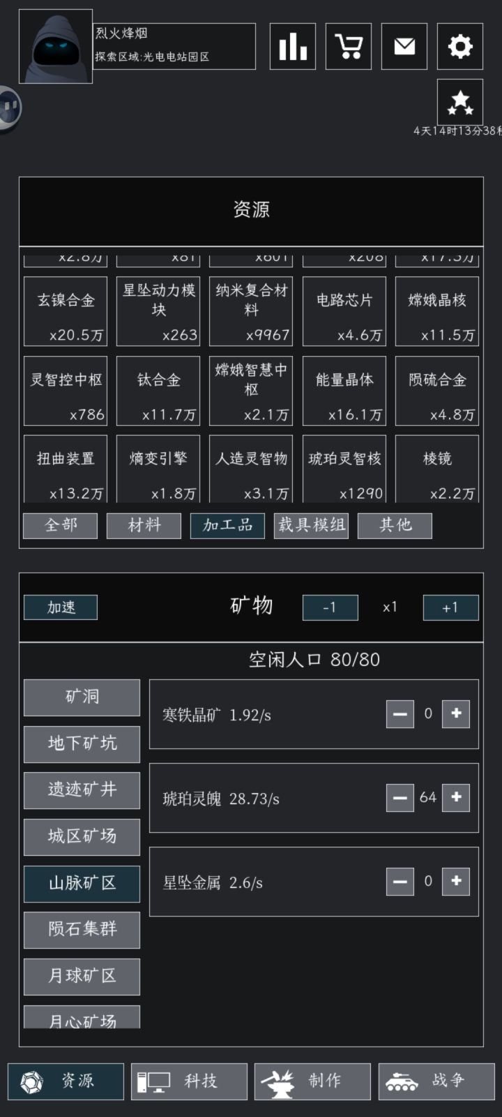 目前感觉还挺不错的诶小建议:只是能不能把“科技”一栏和基础物资放一块儿,资源调配地会比较舒服