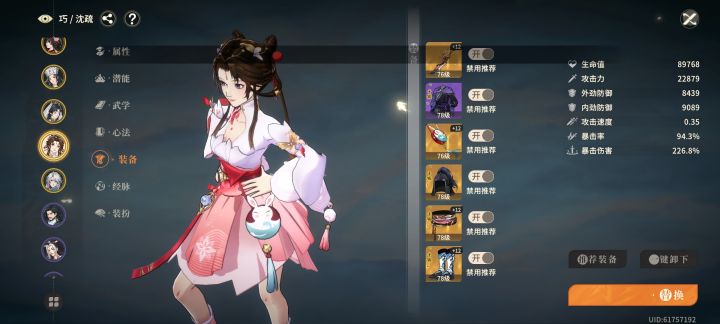 pve:装备可以参考。定位毒群t,聚怪。主要带内防装备和内伤琴,正在值up期间1潜能用,满潜有20增伤。配队:毒队 白衣 阿曼莎 池鹭 冯恪 其他内伤群攻也适配例如凌雪,李嫦鸢配合聚怪很好用pvp:很强 擂台,论剑双开花,擂台 萧公主 张凌霄 冯恪 小六或者李香君