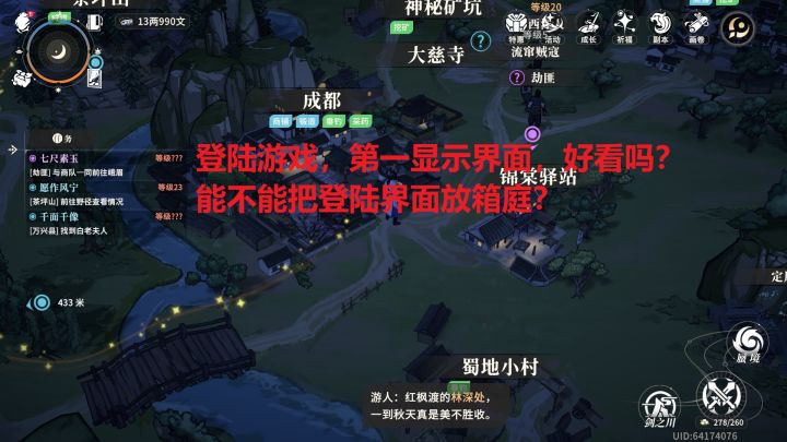 剑之川游玩第六天,吐槽下剑之川各种反人类的UI显示问题,希望后续能得到优化改善。出于汉家江湖的情怀,给剑川上供了张月卡,不过下个月,月卡绝对不会续了,后续不优化这些问题,这就是一锤子的买卖,江湖停氪,就是因为你的持续性摆烂!作为剑川的付费用户,点评的权利应该是有了,别不开心,不是因为汉家江湖的情怀,你这些缺点我都懒得点你,这篇帖子浪费了我很长的时间,下面过来接受审判!!!一、登陆游戏,登陆界面