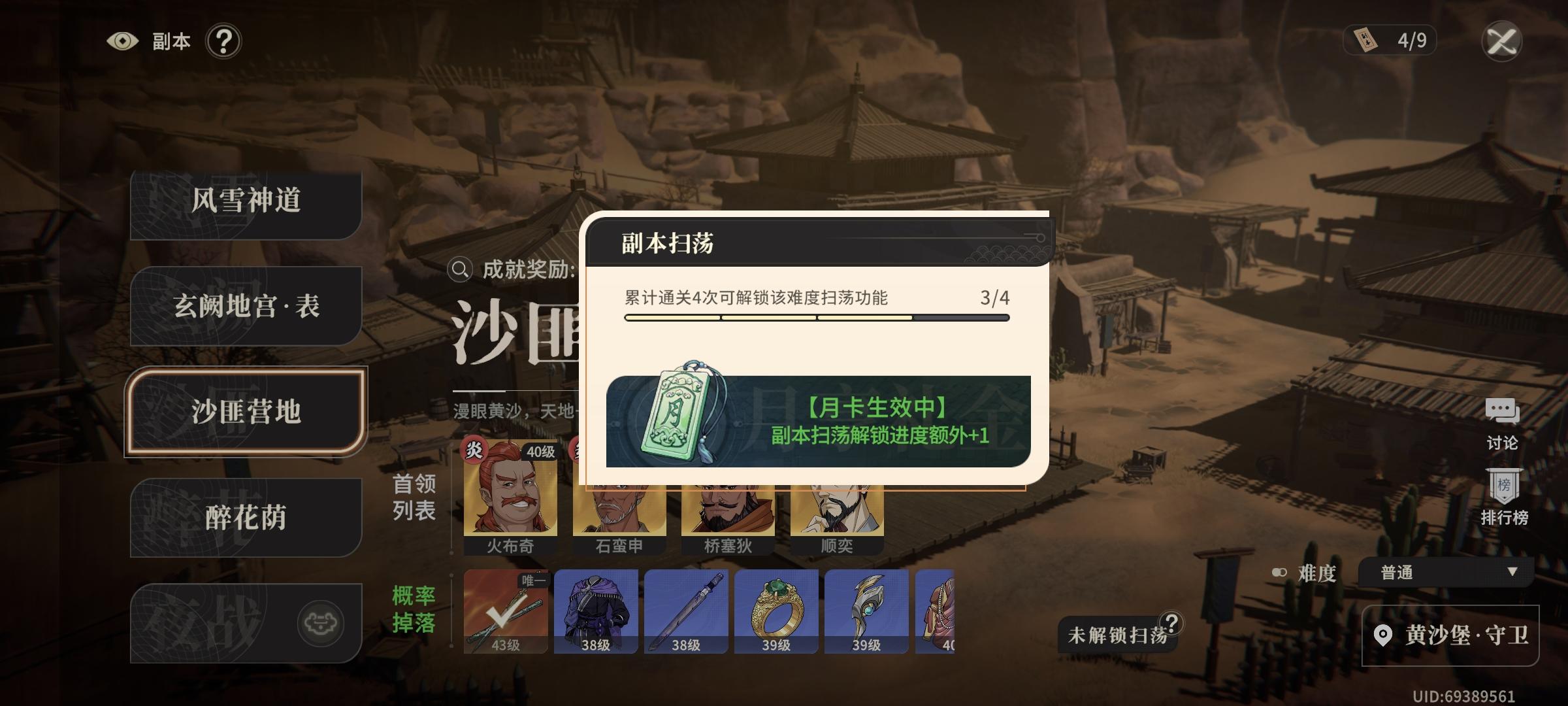 副本扫荡机制