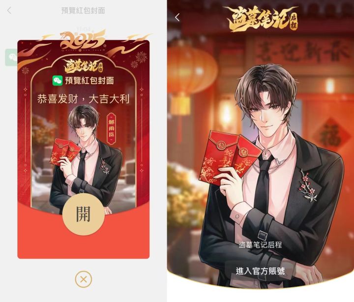 🔍 预约游戏🔍 加入Q群:【1月24日红包封面】即日起至1月25日,预约【盗墓笔记启程】并在本帖下方留下你的新春祝福,随机抽取20名九门后人送出新春红包封面(解雨臣款)!*微信红包封面将以序列码形式发放,中奖者可在页面内查看自己的序列码,前往【微信】-【发红包】-【红包封面】-右上角【领封面】-右上角【兑换】进行兑换。【活动规则】1. 每个账号ID只有一次参与资格,重复参与视作无效;2