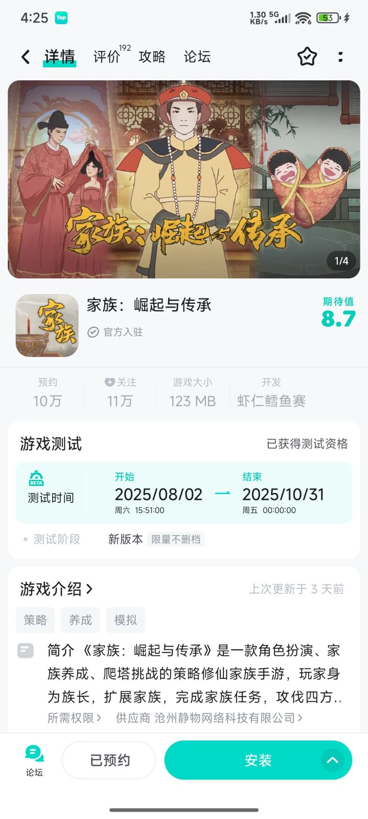 《家族崛起与传承》是一款结合拟真世界、角色扮演、家族养成、物资交易、战争攻伐的联机策略手游。以下是游戏的主要特点和玩法介绍:核心玩法:修身玩家需通过修文、习武、行善、开悟、思谋提升自身能力,同时娶妻生子扩展家族,积累资源与声望。齐家管理田产、商铺、宅院,发展家族科技,与其他玩家联姻结盟,聘请门客培养后代,提升家族实力。治国通过科举成为官员,制定辖区政策(如重农轻商、重武轻文),处理政务