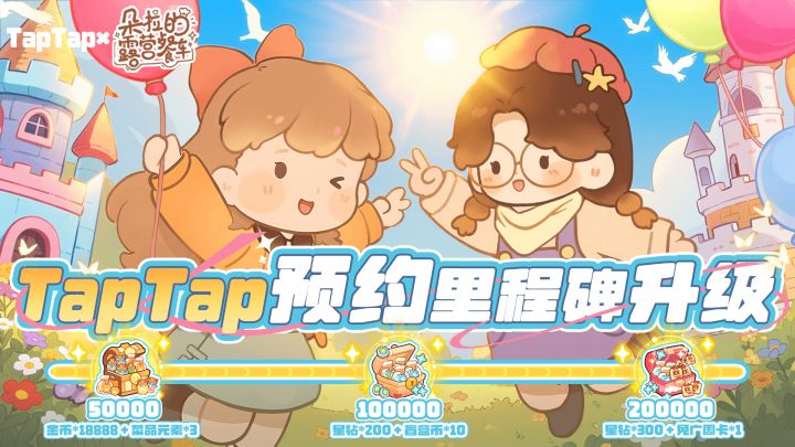 taptap预约里程碑开启~谢谢大家预约分享哦~奖励如下:5万人,赠送18888金币。10万人,赠送200星钻。20万人,赠送5个盲盒币🎀领取方式:进入游戏—点击设置—点击【兑换码】—输入兑换码—直接发放前往《朵拉的露营餐车》游戏主页,点击【预约】按钮,即可预约成功。