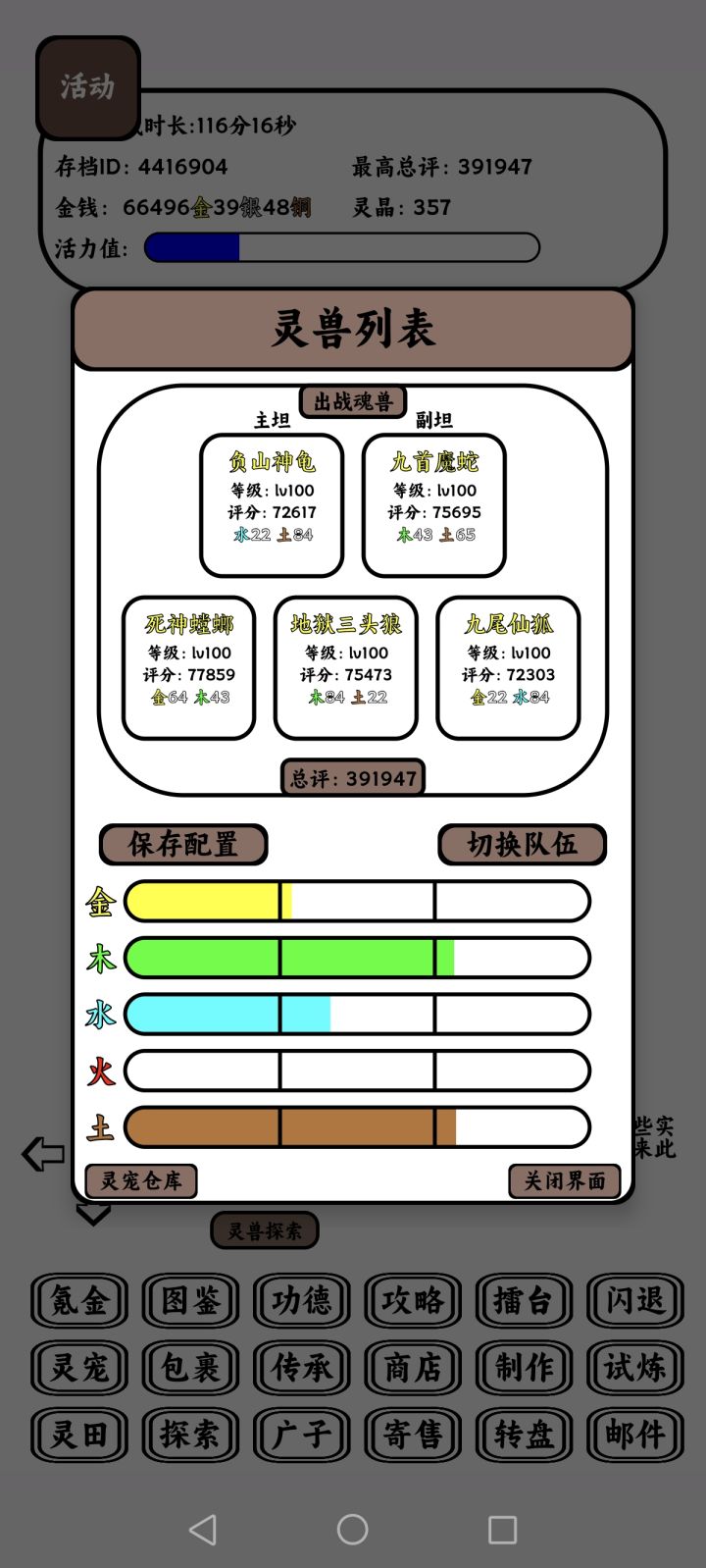进入游戏,点攻略→兑换码,输入ljyx520领取新人礼,在背包开袋子和装备匣。先说宠物一队(挂100级的图)主c(雷霄云纹兽/火龙),凑三金三火,基本强化满装备就能一波。二队(前期主力)主c(风狼),一号副c(风豹,buff机和单点收割),二号副c(火豹,靠被动打伤害,不太吃装备),主t(乌龟),奶(鱼,狐,蝴蝶)。三队(中期boss)主c(螳螂,吞金),剩下三个看个人。四队(后期