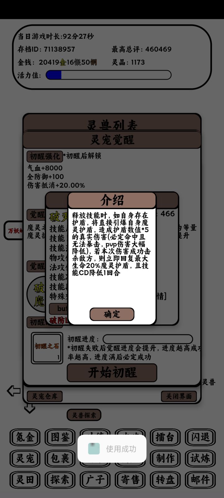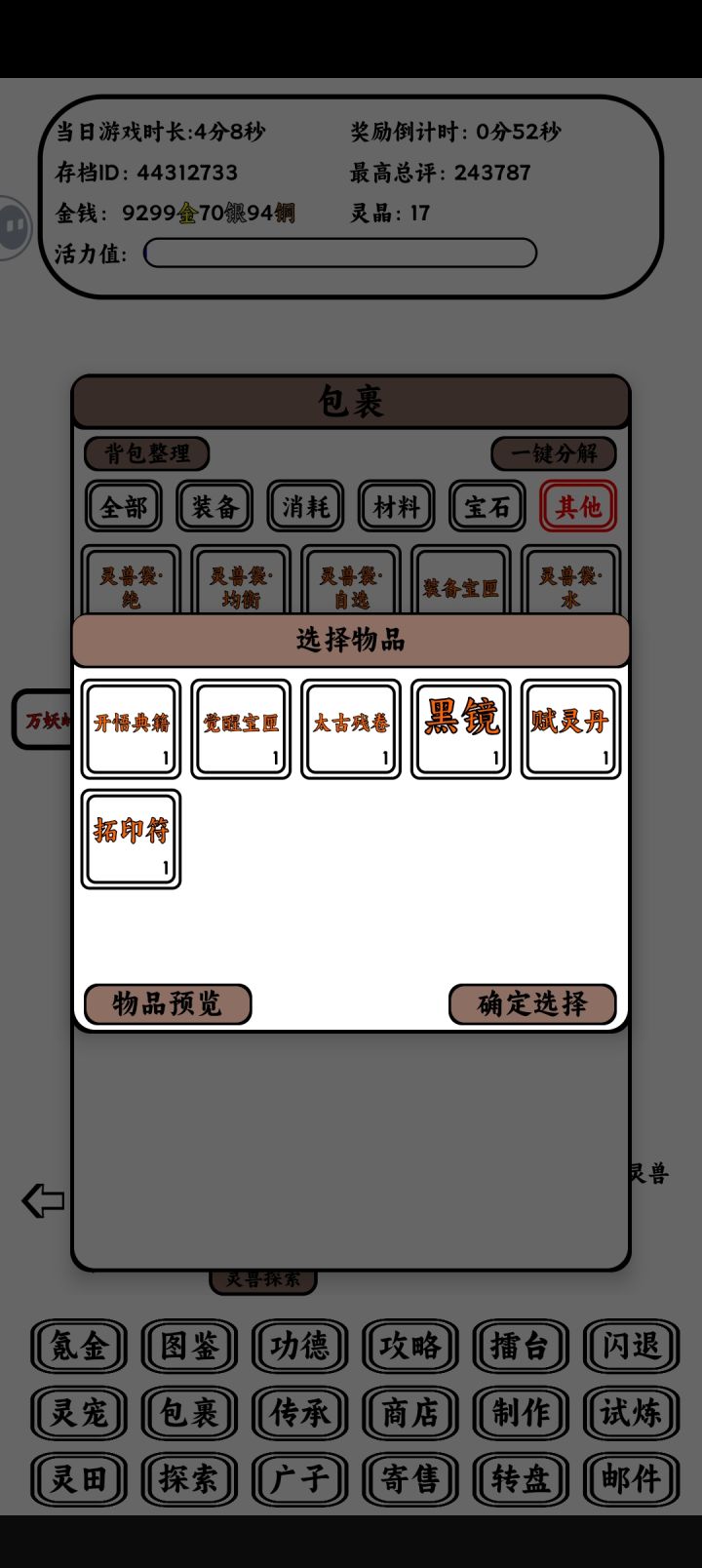 我又来水攻略了,狗蛋水晶作为游戏中比较重要的资源,想必有很多新手不知道如何使用,该选择哪个获得高收益,现在我就来发表一下我的浅薄见解(可能有语病 误 )。如图所示,点开狗蛋的选择界面可以看到6种物品1.开悟典籍 该物品一共有两种获得方式,一是使用狗蛋获得,二是通过100本贤者之书合成(贤者书可以通过试炼通过或扫荡以及转盘获取,其中试炼是大头),使用后可以使宠物自选学会一个橙色技能