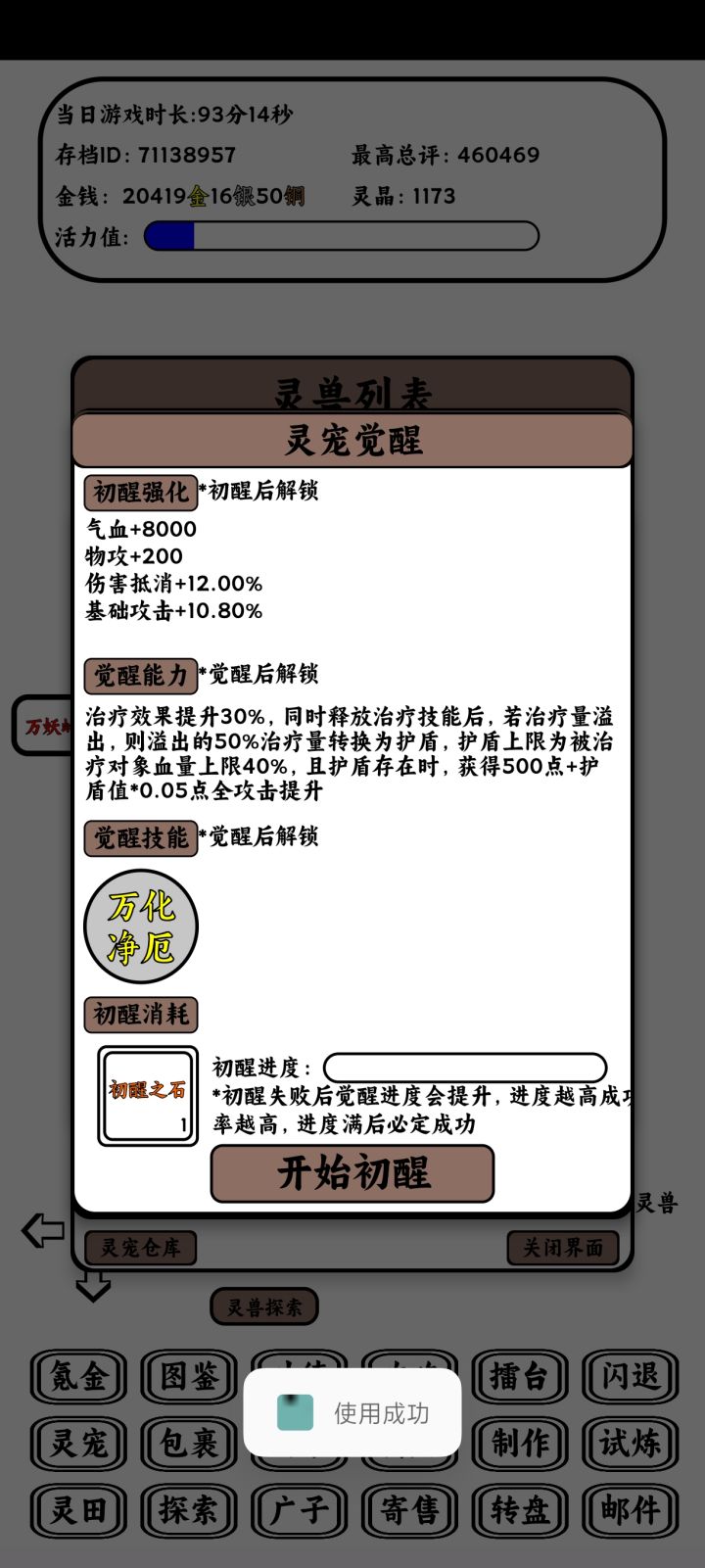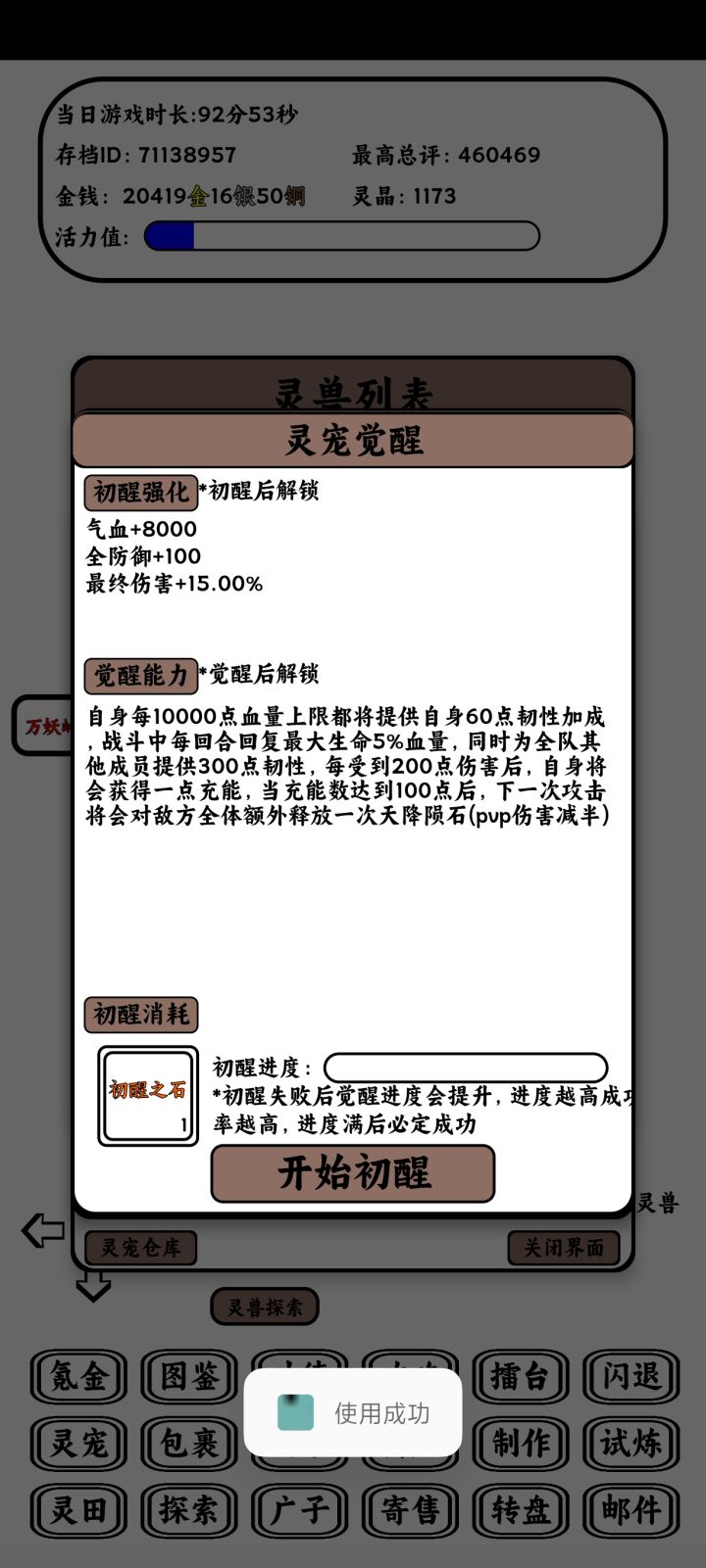 2025年7月版本萌新开局觉醒顺序推荐1.雷纹云霄兽,群伤真核,带破天套+命中帽子明光护头2.披甲暴猿,单体真伤,前排坦克。散件凑够10万血3.死神螳螂,单体真核,装备痛苦面具+诸葛连弩+命中帽子。用单体技能叠层然后打群伤也不差。4.九尾狐,被动加血和暴猿有配合。群体回复血量,装备青囊书5.金翅大鹏,全队加行动速度。迅雷套必备。