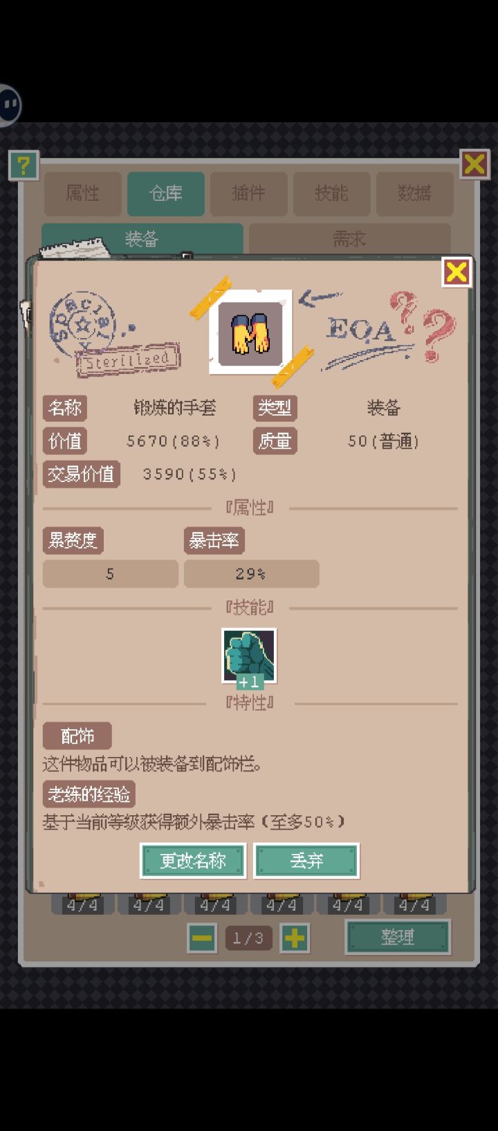 锻炼手套的暴击效果没有实装?