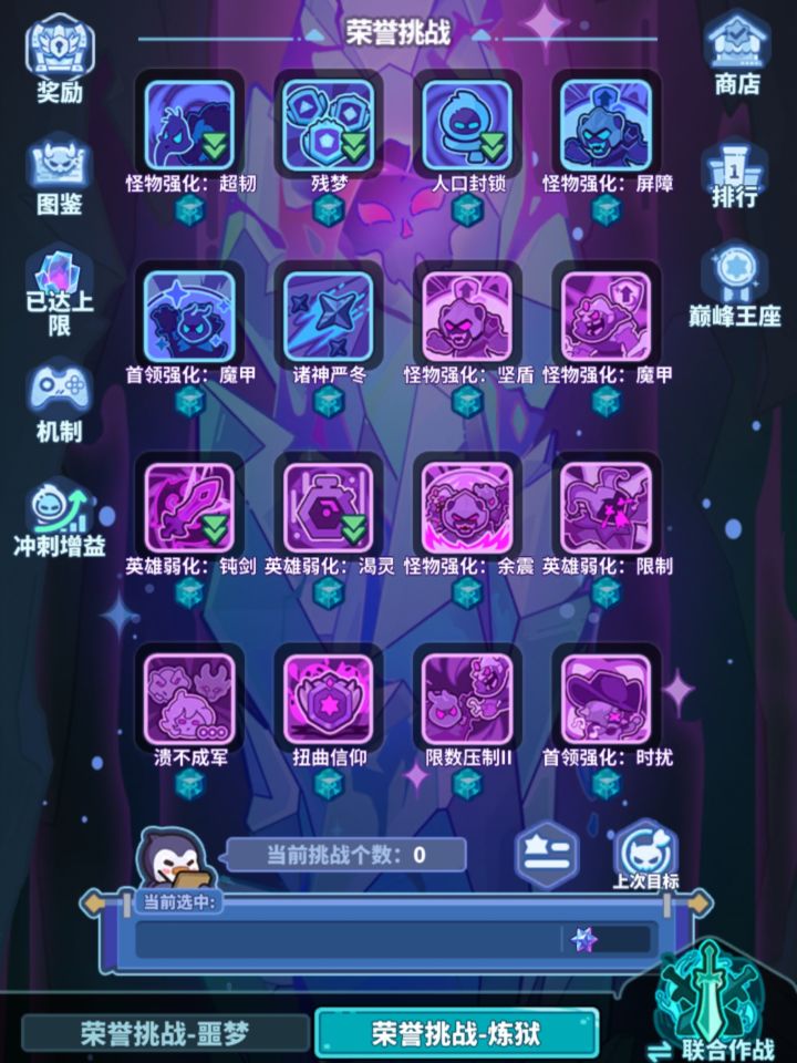 对于打荣誉炼狱的时候,很多人是不会点的,希望出个类似天赋页可以先把要打的点选出来保存,或是跟王者的那个推荐天赋页。我们不会点的可以直接看推荐的直接选择。打420、610、810、1010等等都可以快速选择,不管是辅助还是C都可以更快的选择##改进建议和反馈