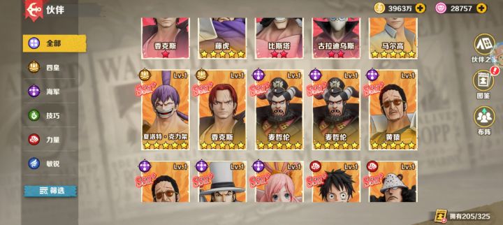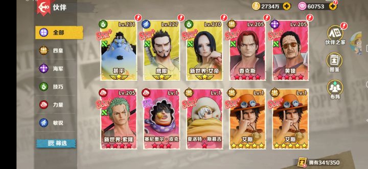 推荐的阵容搭配方案:路飞、布鲁克、甚平、罗宾、索隆:这个阵容以路飞为核心,搭配了其他几个强力角色,形成了一个强大的团队。甚平、龙马、香克斯、鹤、幽冥公主:这个阵容同样展现了一定的实力,适合喜欢挑战高难度的玩家。乌索普、罗、贝基、艾斯、萨博:这个阵容以乌索普为核心,结合了其他几个角色,形成了一个均衡的团队。黄猿、甚平、山治、艾斯、汉库克