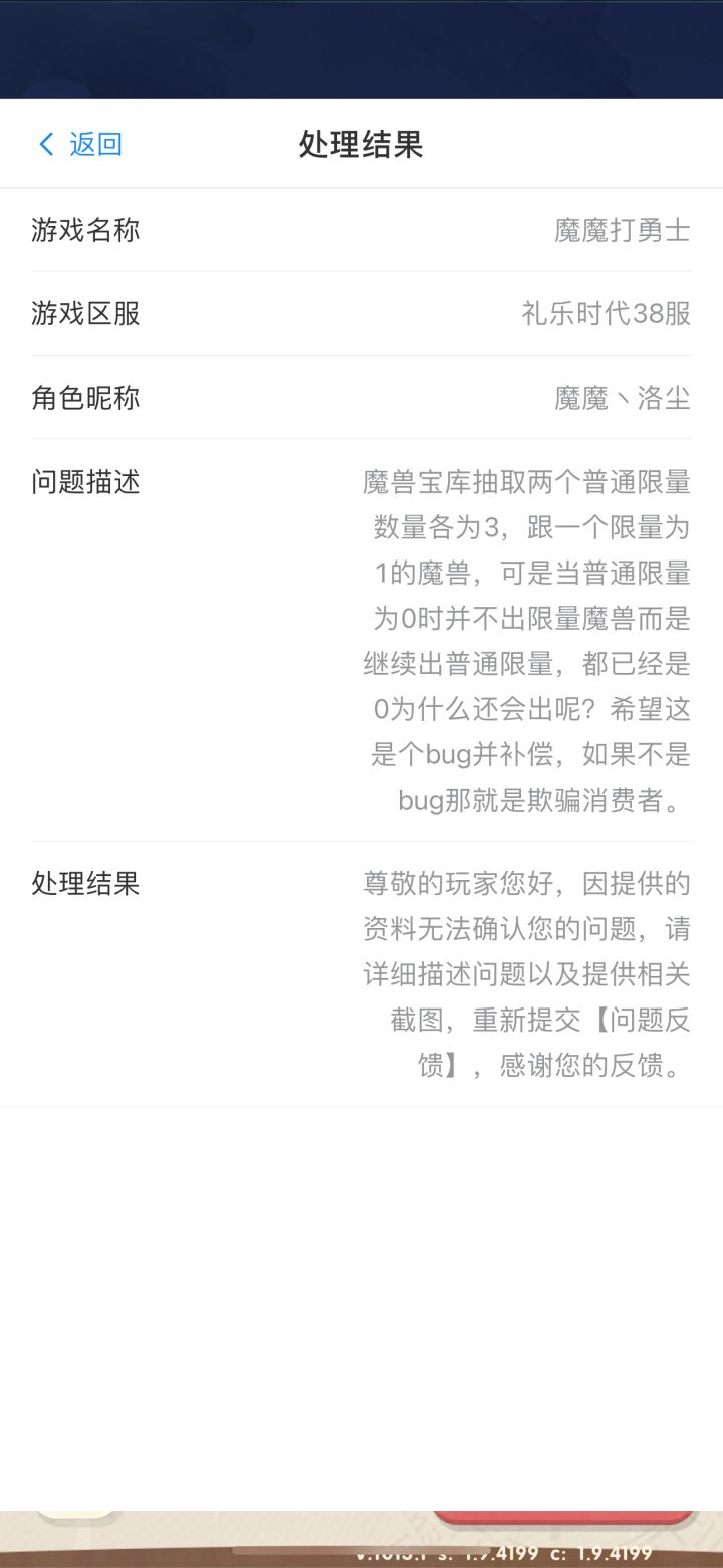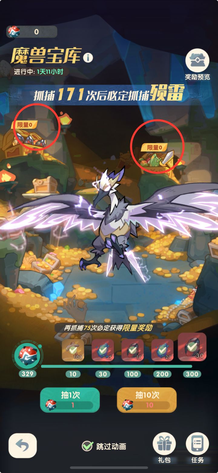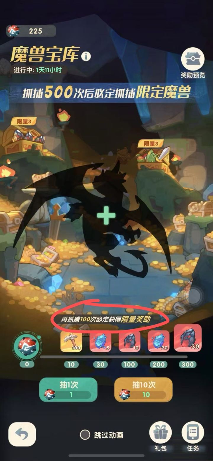 限量奖品加上魔兽就只有7个奖品,普通的6个抽完了,显示也已经是0了,按理说第七次触发限量奖励的时候就应该出魔兽了,结果都触发第八次限量奖励还是不出魔兽,而是出显示为0的限量奖品,完全没有几率吖,直接写着500才出不就好了,就是要骗那些囤了三四百的抽完觉得不抽出来就亏,然而充钱抽满500次呗。