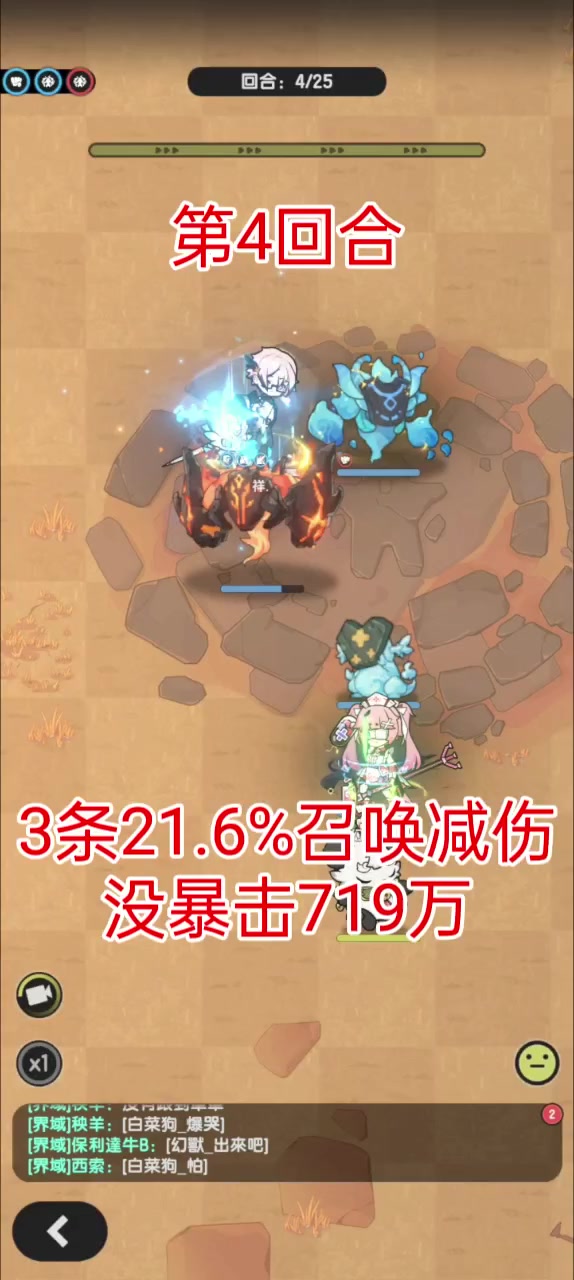 第4回合,召唤兽没被暴击,719万(有负面) 第8回合,召唤兽没被暴击,605万 第11回合,我本人被暴击,529万 1. 虽然召唤物只有我90%的防御,但我有3条21.6%召唤物减伤的装备词条 2. 我本人没有其他额外的减伤词条 3. 对方没有对召唤物额外增伤词条,只有一个负面增伤18.7%,所以第一次719w伤害会比第二次的605w伤害略高(719/605=1.18842,大致符合) 理论上召