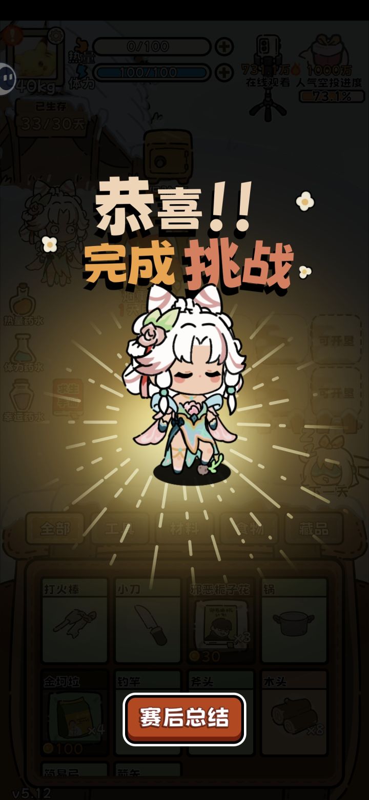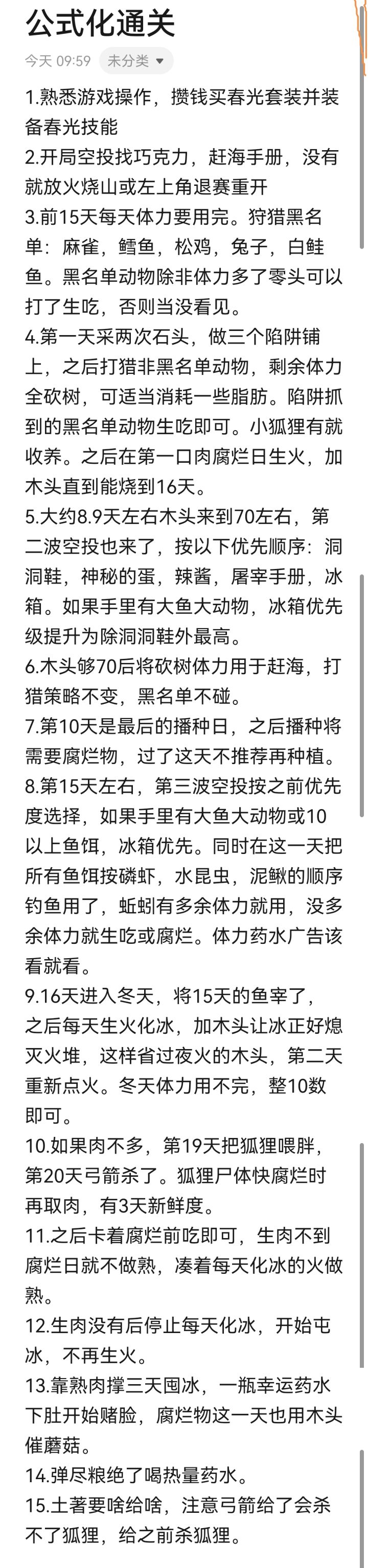 巨兽夹是废的,从来没看到夹过东西,木头要留70个以上。有辣椒酱就可以玩,随便通关。第15天吃体力药水钓鱼,全部卡住保质期最后一天切片、熏制就行,后面的冰块16-25天可以每天开,尽快消耗体力把存货吃掉,不然就都腐烂了
