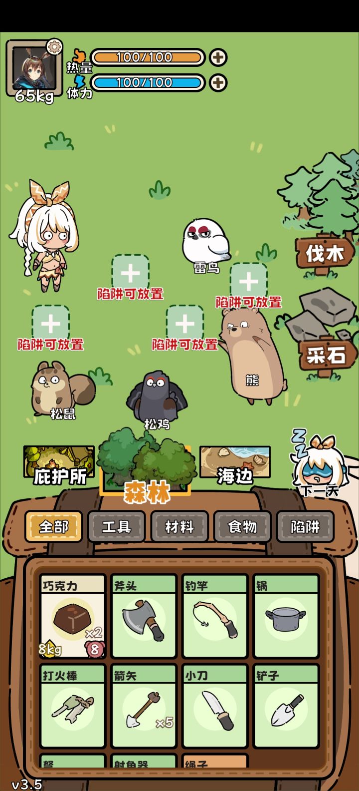 这个档空投都没用完,只看了一个体力广告,热量广告还在,养着小动物。空投天赋:树脂+魔术盒+俩巧克力。除了打猎就是砍树,没什么游戏体验感,目前总共过了三次关。总体感觉来说砍树为主,吃菇为辅的小游戏。还有很多可以优化改进的空间,很多地方操作过于繁琐,总体打发时间尚可。