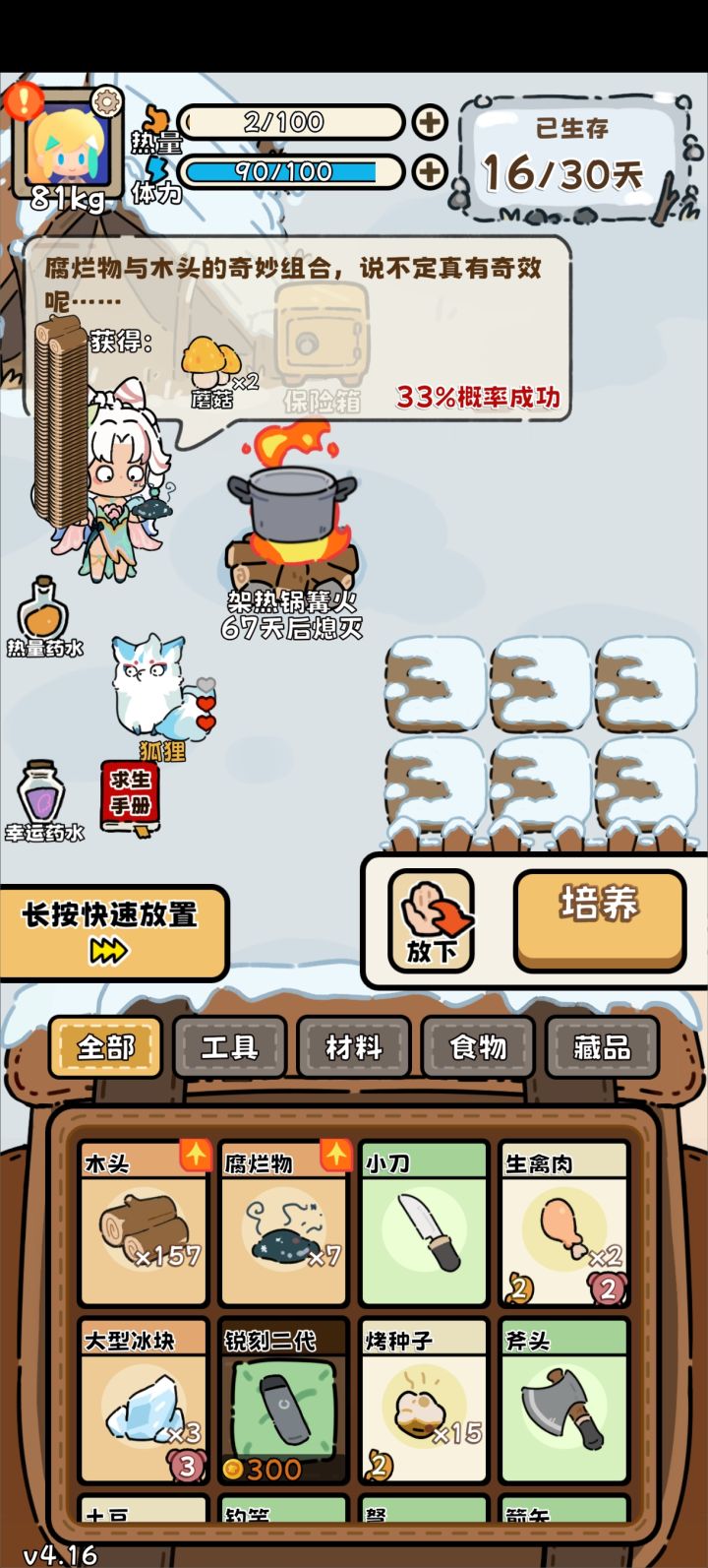 当前版本更新后bug,合成物品1+x失效,只能1+1,目前测试合成蘑菇和海藻饵均如此,希望尽快恢复,不能合成蘑菇只能看运气,太难玩了,尽快尽快!!!