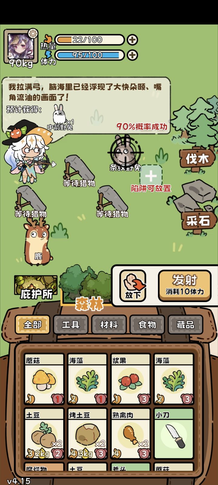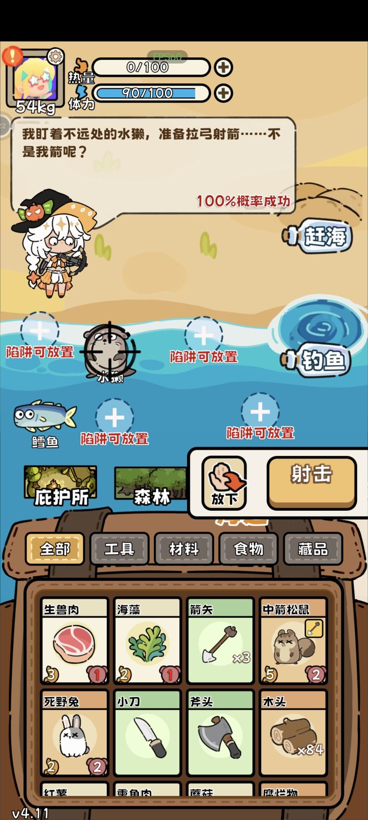 有的局我是有陨石加持,从头到尾唯一有脂肪的动物就只有熊还只有一只,其他都是些小鸟小鱼,好几次都是这样。而我刚刚赢的那局,出来好多有脂肪的鱼和动物,就是没有也是些肉多的动物,而我的金色物品选的是羽绒服不是陨石。就是你都出了这个物品了好歹起点作用吧?我开开心心选个陨石,结果除了点小鱼小鸟就出了一头熊还没打到,有它没它都一样,效果完全不如一次好局。还有某些大动物的打中概率,玩呢?这连30%都不到的概率?