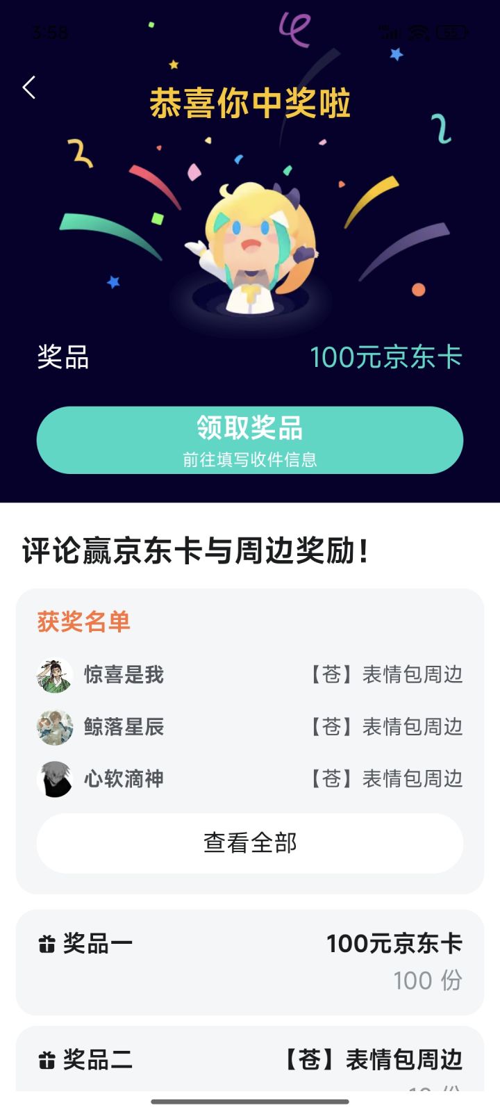 中了100京东卡,怎么领