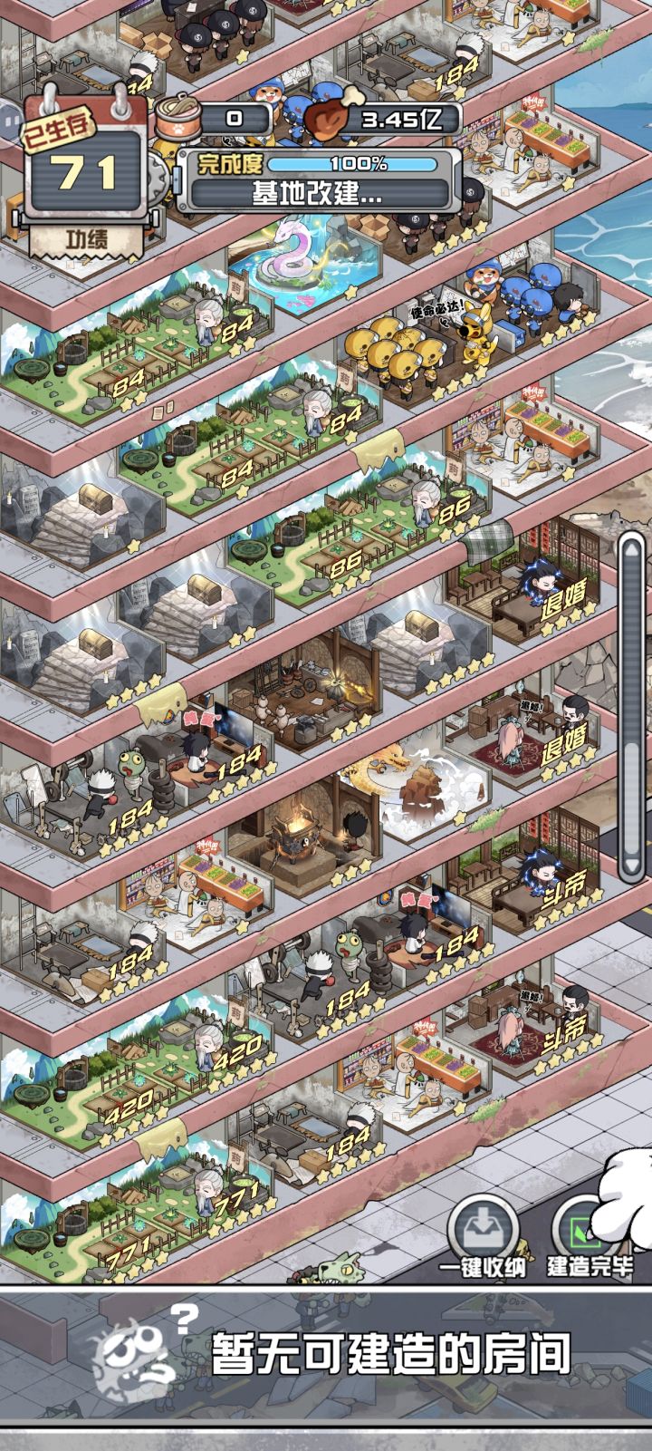 五龙聚顶,差一个六条龙前期全拿扩建和修仙者。炼器够5星就行,五条悟够四星就行,乐队够4星就行。前期不合成,拿到几星就几星。40+天商店拿复制,事件选+10概率,乐队四星挨着五条悟,炼器合到5星,其他全部三星爽合一波。58天奇遇收菜直接通关