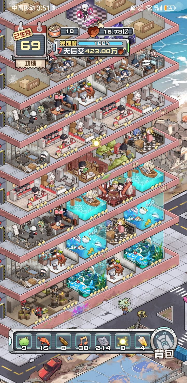 主要靠3级柠檬茶提升价值 4级外卖×666%前期记得最后一天卖柠檬茶凑鸡腿数 大事件全部都选全场生产+1 异能选加道具价值 加柠檬茶价值 生产次数+1 前期拿格子 中期拿返现 利滚利 末世规则 别的就存着 18天以前别合成 18天结束拿一个全场复制 然后合3级 我是多的才合了4级 因为我带了咒术师 最后64天的时候把除了柠檬茶以外的道具在背包全部卖掉 第10次计划的时候全部买火钳计划 单个道