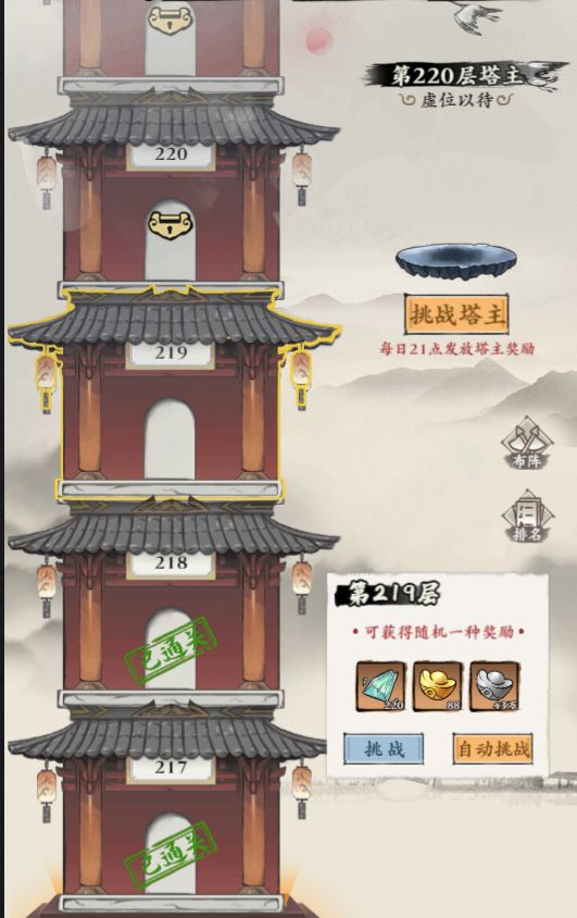 在巡游攻略(上)给仙友们介绍了,每日修行、逍遥幻境、灵田、名人堂的玩法,本篇主要介绍:天道试炼、专武秘境、异域邪魔、万兽谷这4个玩法。飞升台玩法的内容过多(飞升台通过400关后开启玩法。),需要单独开一个章节和侠客们分享。1.天道试炼(1)主角达到锻骨期1阶开启,试炼塔通关10层后,解锁挑战塔主玩法。(2)从第五层通关奖励20仙玉开始,每通关五层奖励加20仙玉。挑战塔主占领塔层后每天有结算奖