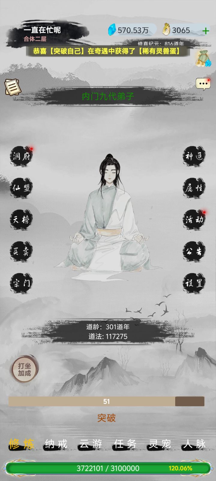 《仙境苍穹》登仙前超强精华攻略一、前期福利最大化 1. 福利码领取:进入游戏 24 小时内,在修炼界面 “设置” 中填写接引码 nVmyoWYbO7d7kMK,可获 200 仙玉。同时,输入礼包码(shenmo666、shenmo、xinshou、apple、taptap),加官方群还能额外领取 1 万多仙石。若在特定节日期间进入游戏,如 2025 新年期间,输入对应的新年礼包码(1.27 “凝元
