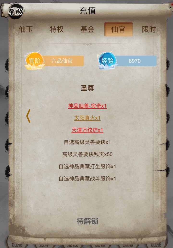 本游戏为放置类游戏,主打休闲,不追求进度,利用碎片时间玩,每日花费时间不超过15分钟,以下功略适合0氪微氪玩家1.进游戏后选择服务器,各服务器没差别,但是建议选内测一区,因为里面都是高阶仙人(平均等级大罗金仙圆满),所以打坐会有低境界加成(凡人阶段1000%)。2.进游戏后24小时内点击修炼界面人物右边一列最后一行的“设置”,可填写接引码NbDYZ7DqJad4y3B(200仙玉的奖励),兑换