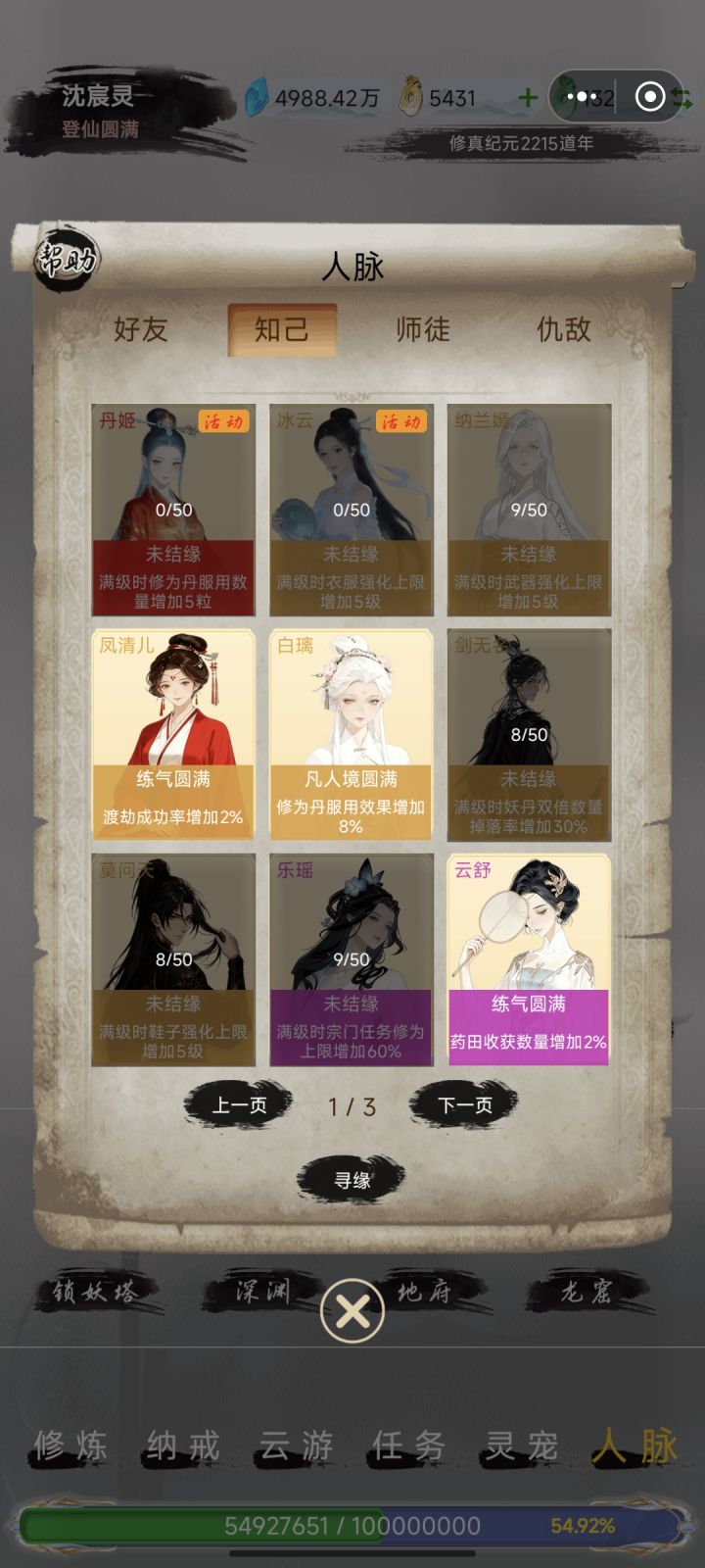 游戏越来越好,知己这个寻缘石弄的好慢啊