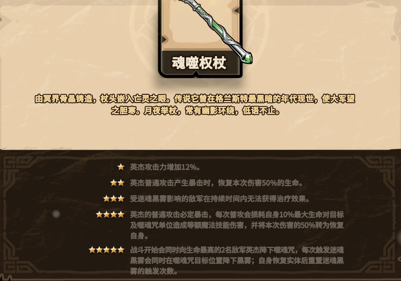 官方稀有度T0,实战强度T0,推荐抽取SS一、主动技能1️⃣ 噬魂咒(标记)开始2秒后触发,标记敌军生命最高的英杰:自身每次普攻都会隔空对其造成一次普攻伤害(独立计算暴击、命中),该目标阵亡后会继续标记敌军其它生命比例最高的英杰,直至敌军英杰全部阵亡。2️⃣黑雾生命首次低于75%/50%/25%时散发迷魂黑雾,对范围内所有敌军造成300%魔攻的技伤(对士兵仅造成25%伤害)并使其命中闪避