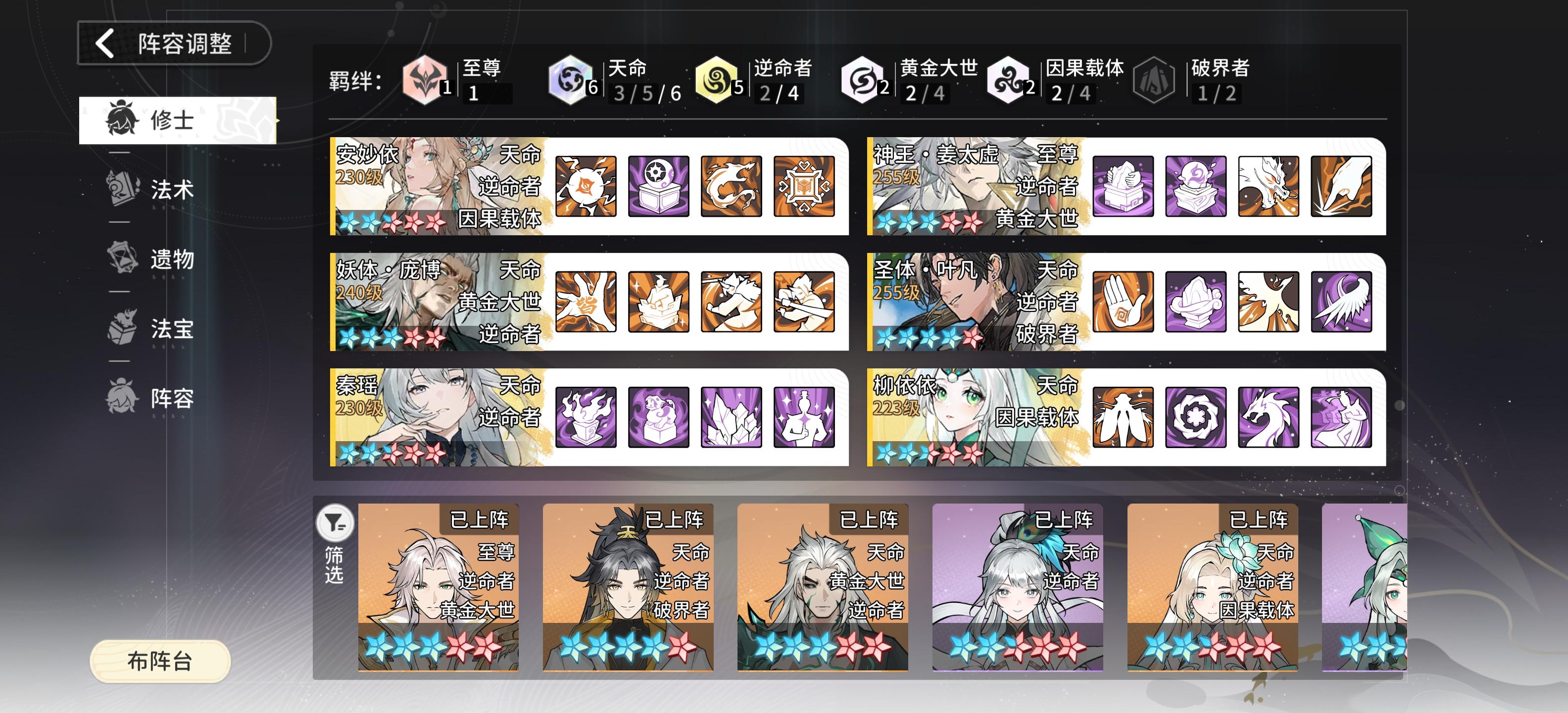 浅测六羁绊20点不是额外乘区。现阶段20点已被稀释,可开始混搭。 先来一套搭配:安姜姬狗,+任意2逆命c(血脉传承天命均可)有四因果四逆命和三羁绊,有大佬试下吗[表情_吃瓜][表情_吃瓜][表情_吃瓜] #遮天凡尘一叶攻略 #遮天凡尘一叶手游