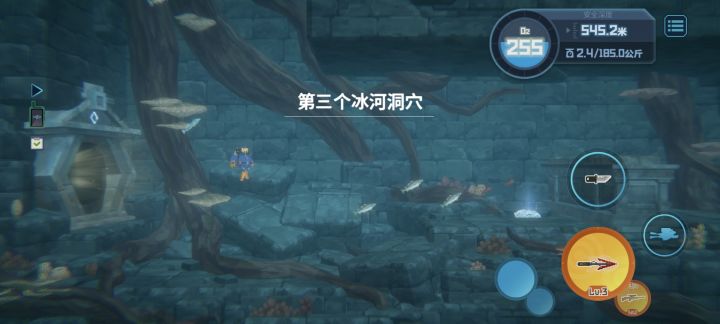 在冰河区域右下角的第三洞穴,走上层路线,如图位置(概率生成,没有就回船上重来)