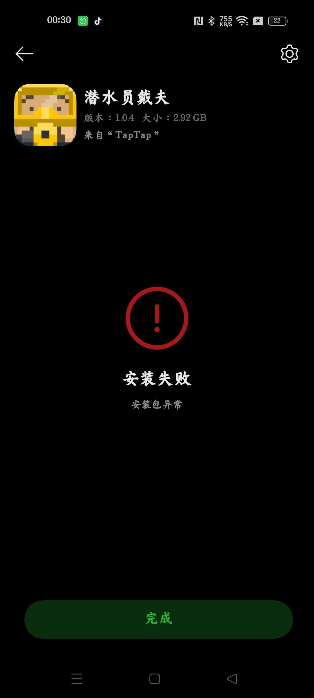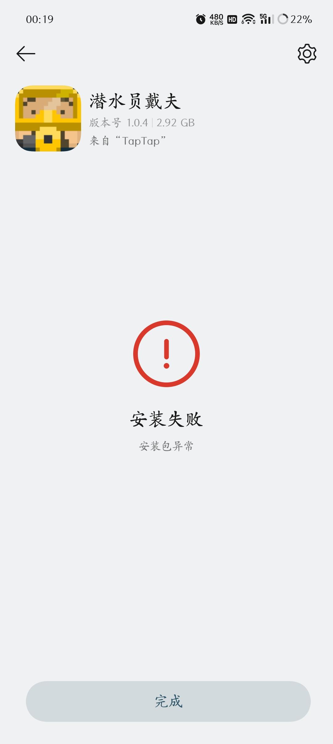 下载两回都安装不了,尝试安装很多次都不行,一直提示安装包异常,这是什么问题?#安装失败 #潜水员戴夫