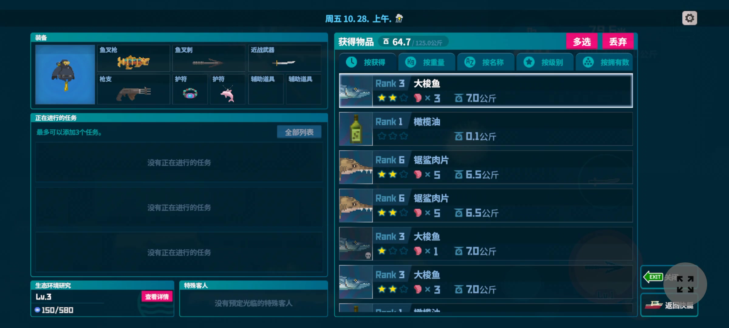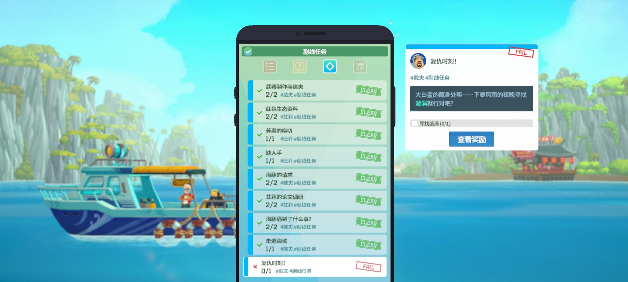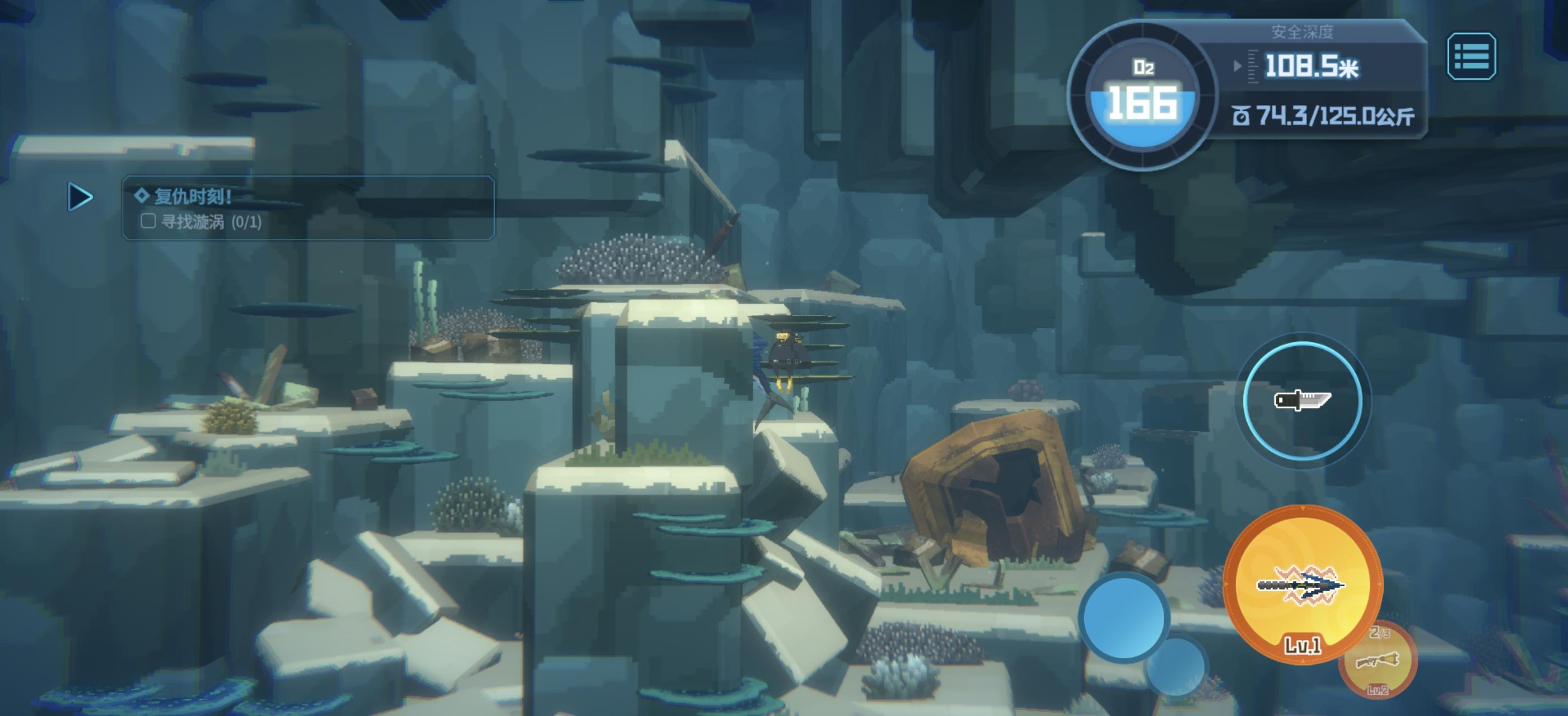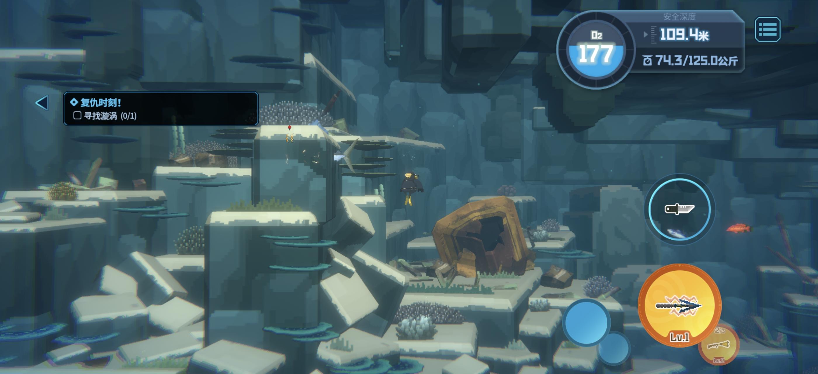 #潜水员戴夫 由于鱼叉对小体型鱼有击退效果,所以在一定距离内攻击靠近石头边的鱼会将其击入石头内,但在这种情况下对鱼造不成一点伤害,不论打多少次都无法捕捉。 另外寻找漩涡的任务似乎无法找到漩涡位置。