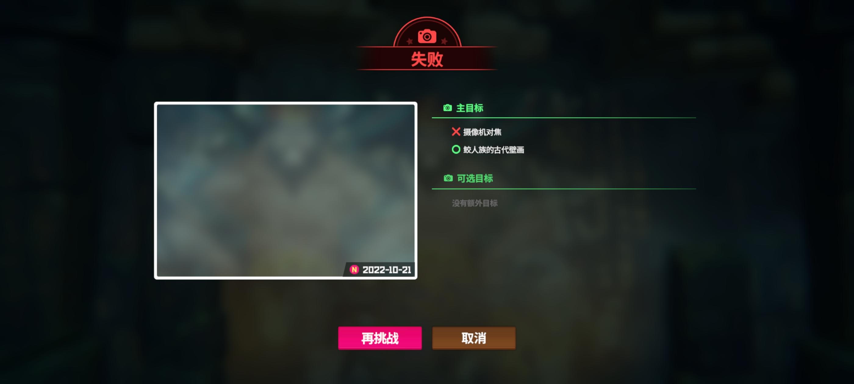 这是bug还是我的问题?查了资料看了视频教程,有的说要重启游戏说内存不够的,有的说相框要变绿的,但是我重启也把所有焦距都试了一遍还是失败。有没有过了的教一下?