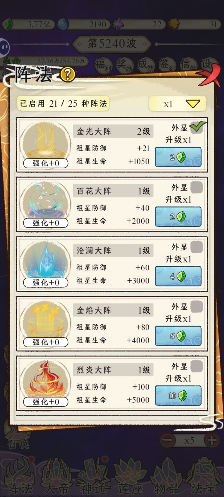 先叠个甲:广告这个sky老玩家一般都有心理预期,新玩家会有不同的态度,不做讨论,略过。我直接点,这游戏体验不好的原因主要还是由于游戏机制问题,由于生存向的属性,怎么堆都无法支持通关,所以大部分内容都是完全无用的,具体有:全部阵法,全部神通,大部分法宝,小部分大帝天赋,基本就是以上的几张图。然而这部分还不是最致命的…离谱的是还有两种大帝天赋和两种法宝是副作用的!是的,特别点名批评“二连射击”和“
