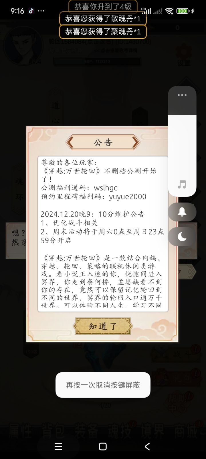 世界评分:一败涂地,9分点数分配:天资10点、幸运10点、外貌10点、体力10点、情商10点本世经历:第1段:你选择了学术方向,目前看来是适合你的!(+1分)第2段:跟着老师的教导,感觉有一定的进度!(+2分)因外貌出众被儿童广告选中!(现代世界宝箱*1)第3段:小学的课程不是很难,跟的上!(+2分)遇到同学找茬,高超的情商让你化敌为友!(现代世界宝箱*1)第4段:中学开始,是人生中比