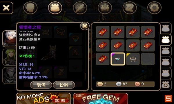 记忆4F左 无尽的雪原-失去理性的石魔 LV 105精钢胸甲 LV 105 (105等板甲,素质不太好的感觉,不过对于追求防御极限的黑骑应该还是不错) 蝴蝶髮卡 LV 105 灭亡之深渊 LV 105 (105等双手武器 火属18% 高暴率) 记忆4F中 试炼之洞穴-愤怒的牛头怪 LV 105嗜血之刃 LV 105 (这把打到的毒属性是随机给的, 有毒有暴率有HP吸收~颇不错! )破灭