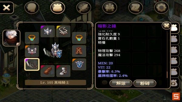 记忆5F 卓拉德 LV 106暗影之锤 LV 105希望之冠 LV 105 霸王之剑 LV 105 (治癒气息5% )记忆5F 费罗赛普妮 LV 106控魂之杖 LV 105 (很暴很暴的法杖XD 血也加蛮多的) 奥赛丁之光剑 LV 105 (个人认为是最帅的双手剑拉哈哈 寒气属性我也蛮喜欢)华丽的花冠 LV 105 记忆5F 黑暗的影子 LV 107战争之痕 LV 105灵魂
