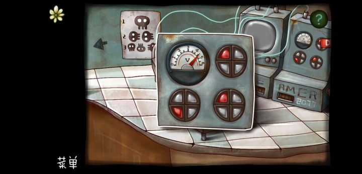 第七关的机器红色按钮攻略:那个坐标图,左上角代表是电压表,根据公式数值计算得4.5(V=4+5/10),剩下三个圆形红色按钮,参照坐标图和符号图进行对照就可以得出最后答案了,÷=△,符号图的三角形下面的黑块就是按钮的形状,+号和×号下面的黑块也是,一一对照就行了。