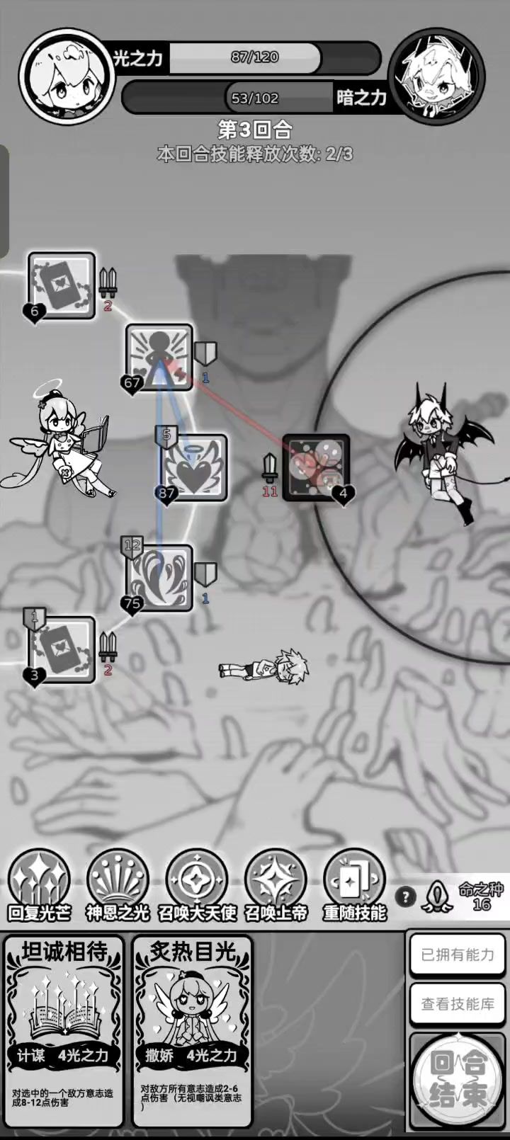 “声东击西”技能恐怖如斯,能对暗之力造成26的伤害,撒旦的“封穴”技能疑似bug未能触发,用这个bug活百岁以上完全不成问题,大天使和上帝都没必要出手[表情_惊吓]#天使模拟器