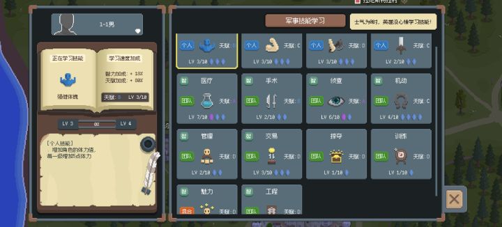 新版本,有段时间没玩,不想用老存档,建新档前有点记不住怎么选开局了。于是测试并记录。首先是1猎人-1草药男和男伴。(虽然我肯定不会选这个组合)然后是1猎人-1草药女。女伴。可以发现女主在药物,侦查和管理的成长水平更高比选男主高,但是四维的前三弱,生命力等相关也弱。