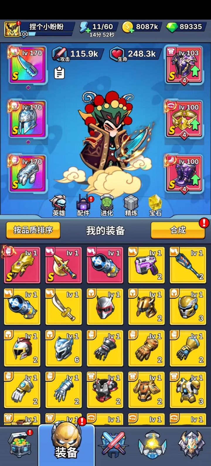 新手篇1 进游戏先把邮件领掉,去商店最底下用钥匙抽装备。2 去装备界面把装备穿戴好,把主界面挂机领一领,角色经验基本上可以升到7级。3 挂机获得了升级所需的材料和金币,再去装备界面升级一下,进化里边再升级到7级。4 有了这些准备,基本上可以推到第5关。5 第四关难度上来了,此时领取一下关卡进度宝箱,重复前面步骤提升装备属性,继续推关就行了。5 点主界面顶部体力,免费领三次,100钻可以