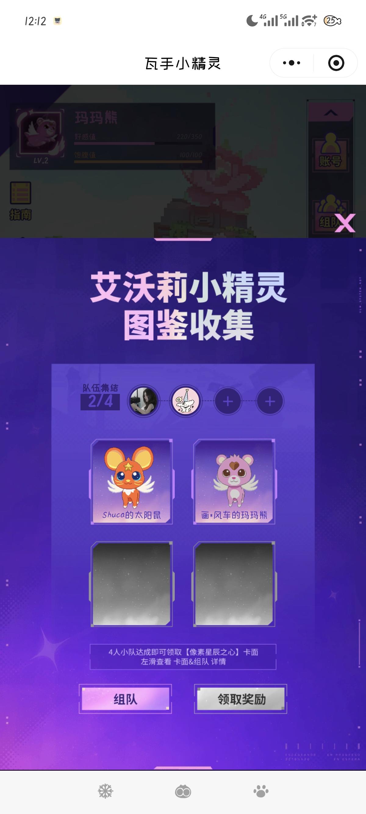 我在【瓦手小精灵】获得了契约小精灵【玛玛熊】!小队目前还差太阳鼠/露娜猫即可全员获得限定卡面,复制口令NezCSN7H加入我的小队!