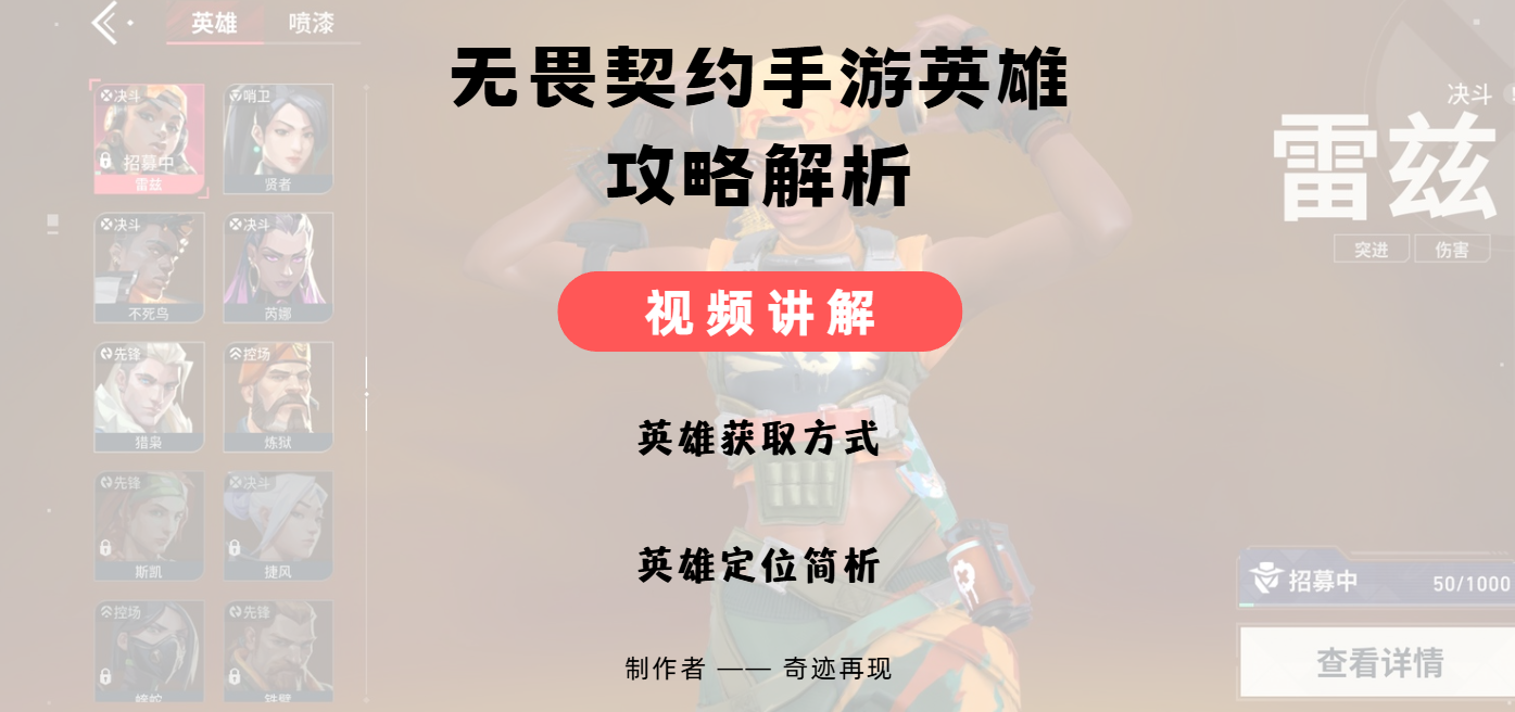 英雄获取方式包括默认获取、招募任务(包括入门训练和对局任务)、点券购买和英雄自选礼包,可分为控场、哨位、决斗和先锋四类。#无畏源能时刻