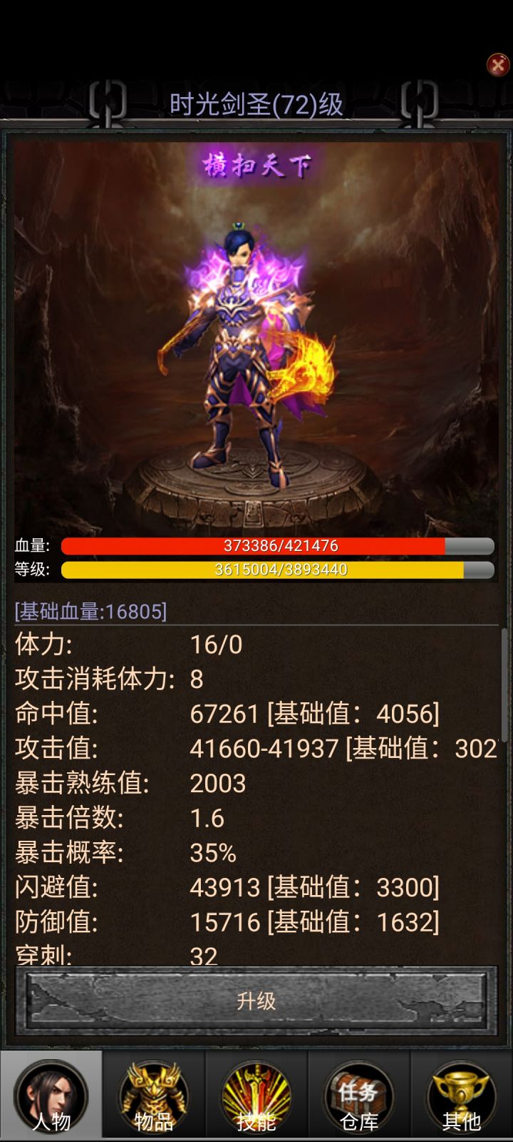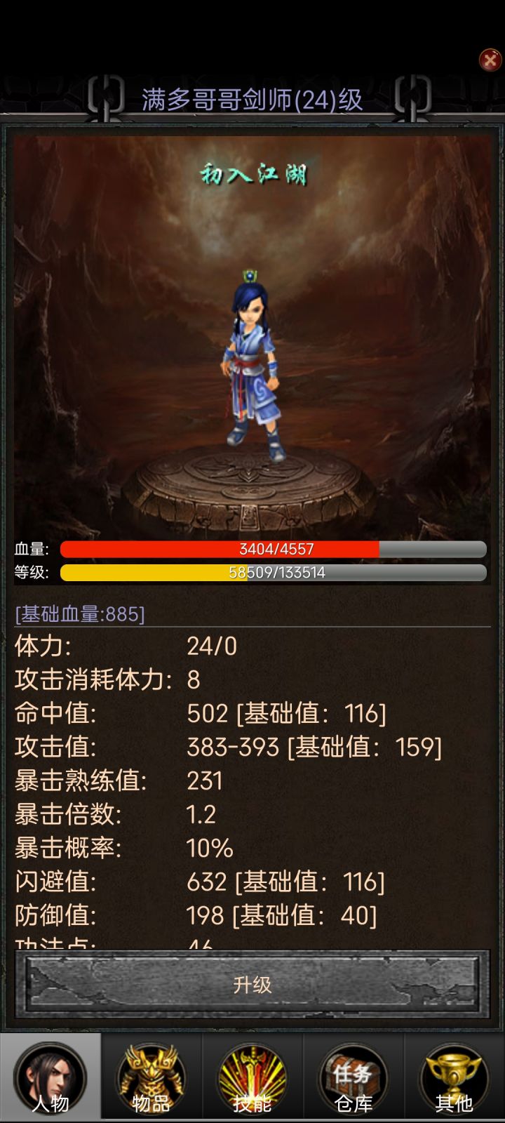 玩了这么多款刷装备游戏,这款最良心,升到72级有惊喜(具体看群广告),开局先找掌门选修,建议不建议体修,体修前期太难熬了,其他你随意,先去商店买俩最便宜的戒指和项链(增加伤害提升刷怪效率,再装备上,记得武器也要装备上,然后经验丹全吃了,附近随便找小怪开刷,一开始升级很快,因为前期怪物闪避低,全点攻击就对了,效率最重要,全身准备差不多满套了,直接去刷一阶装备,战斗中点击左下角老虎头像可以看出能掉落多