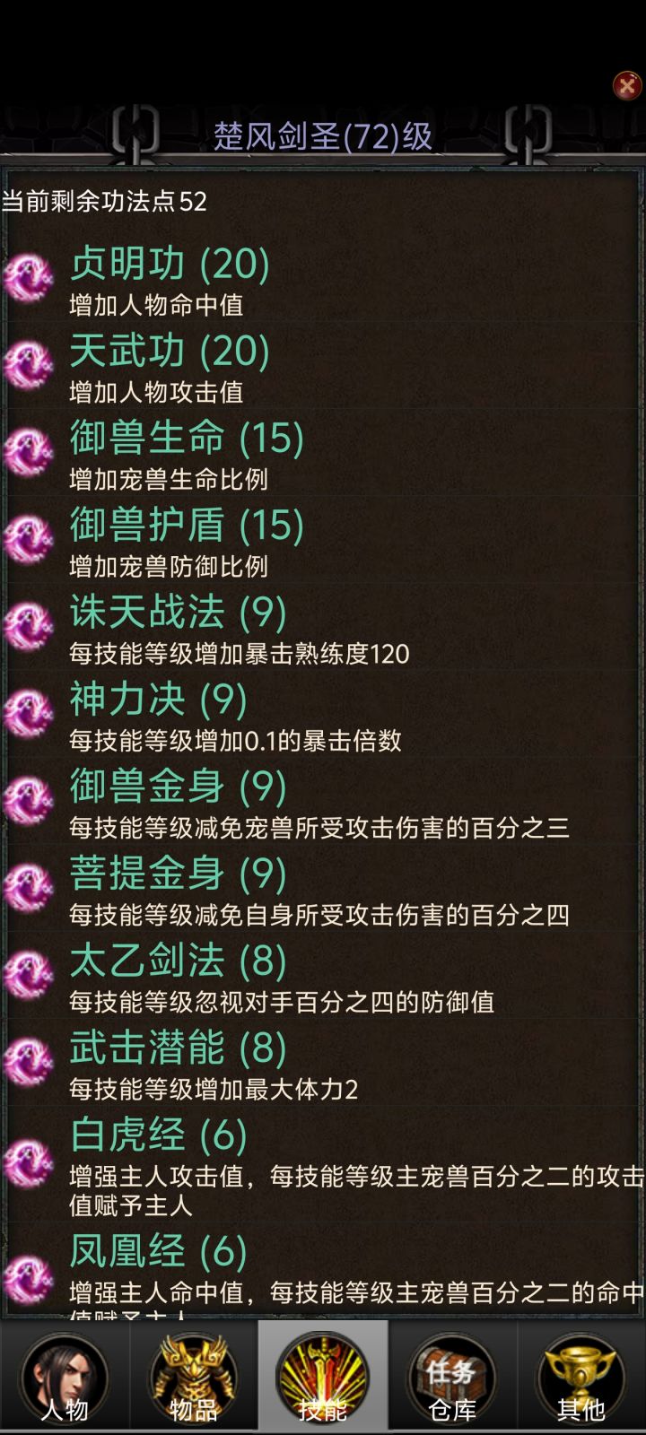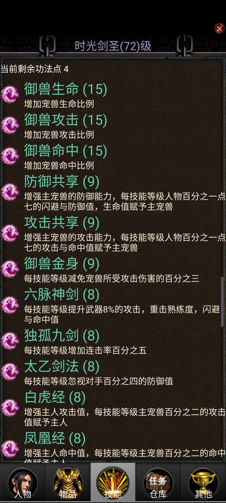 此贴也算是个人的见解(哪里不对大佬勿喷)我玩的是武修,前期也走了不少弯路武修第一个就是关于升级加点,主修主要加点命中跟攻击,我加的是半命中半攻击,也可以全命中,全攻击的加。 第二个就是关于功法,我学的技能图片上都有,算是武修比较主流的技能,后续还有一个共享生命,至于怎么加点各人有各人的理解。像是北冥神功目前版本不太建议学,比较鸡肋。 第三个,就是装备,武修的装备主要还是武器戒指跟项链,防具不