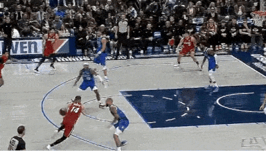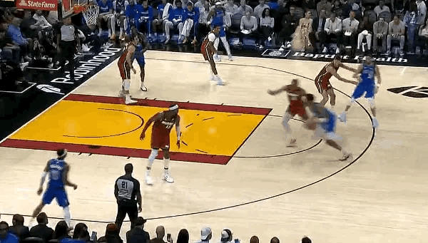 NBA常规赛,热火客场对阵独行侠的比赛正在进行中。比赛的第一节,希罗接球瞬步突破,抢出身位倒地强行上篮打进2+1