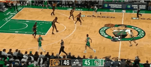 NBA常规赛,尼克斯对阵凯尔特人的比赛正在进行中。第二节比赛,布朗杀向篮筐上演滑翔双手暴力隔扣,凯尔特人反超比分。