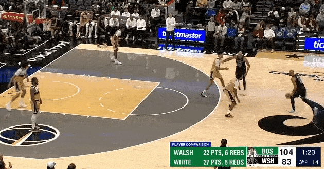 NBA常规赛,凯尔特人对阵奇才的比赛正在进行中。第三节比赛中,怀特超远干拔三分投进领先24分,已经砍下30分6篮板9助攻。